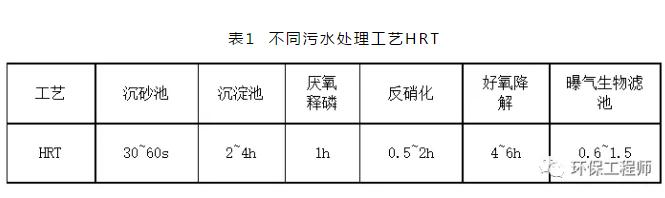 HRT即平均水力停留時間,指待處理污水在反應(yīng)器內(nèi)的平均停留時間,也就是污水與生物反應(yīng)器內(nèi)微生物作用的平均反應(yīng)時間,為反應(yīng)器有效容積與進水量的比值。對于生物處理,HRT要符合相應(yīng)工藝要求,否則水力停留時間不足,生化反應(yīng)不完全,處理程度較弱;水力停留時間過長則會導(dǎo)致系統(tǒng)污泥老化。