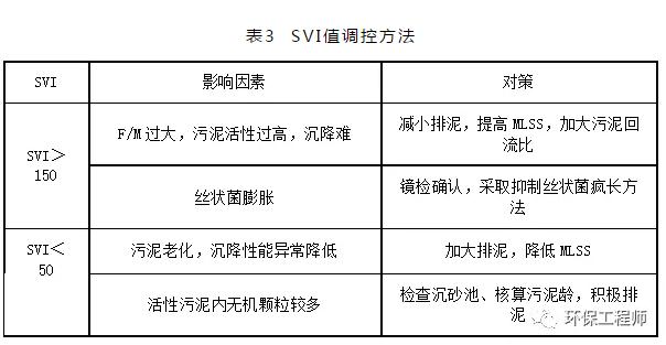 SVI主要反映污泥的松散程度,當MLSS很高時,僅用SV判斷污泥沉降性是不準確的,必須結(jié)合SVI。對SVI的調(diào)控主要通過對MLSS的調(diào)整。