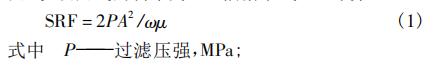 取 50 mL 調理后的污泥樣品于直徑 150 mm 的布氏漏斗,進行抽濾。記下過濾時間 t(s)和濾液體積 V(m3),利用 t /V 對 V 作曲線,該曲線的斜率為 b。根據下式(1)計算 SRF。